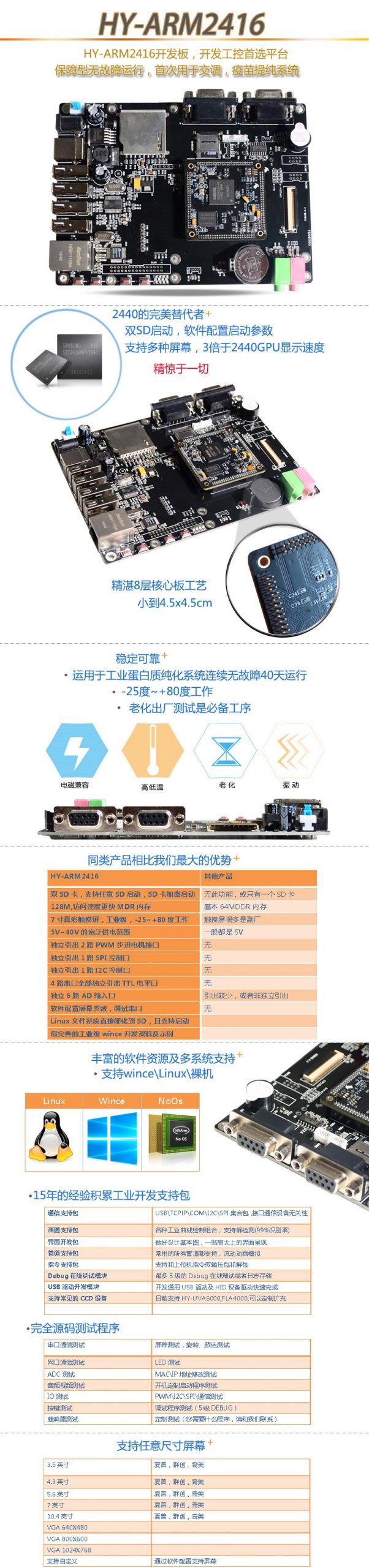 支持SD卡啟動(dòng), 支持linux, WINCE 雙系統(tǒng). 隨機(jī)贈(zèng)送全部開(kāi)發(fā)資料及源碼.上手及其容易, 將近8年的資料,讓您足不出戶, 學(xué)會(huì),及熟練應(yīng)用ARM板相關(guān)技術(shù)開(kāi)發(fā).大家可能對(duì)2416有點(diǎn)陌生, 因?yàn)榇饲敖佑|的都是ARM2440A, 2416是2440A的升級(jí)產(chǎn)品.對(duì)2440系列作了很多改進(jìn).